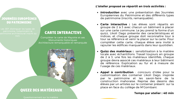 Dans le cadre des Journées Européennes du Patrimoine 2025, l’association Likoli Dagoni a organisé plusieurs événements autour de la valorisation du patrimoine architectural et de sa transmission.