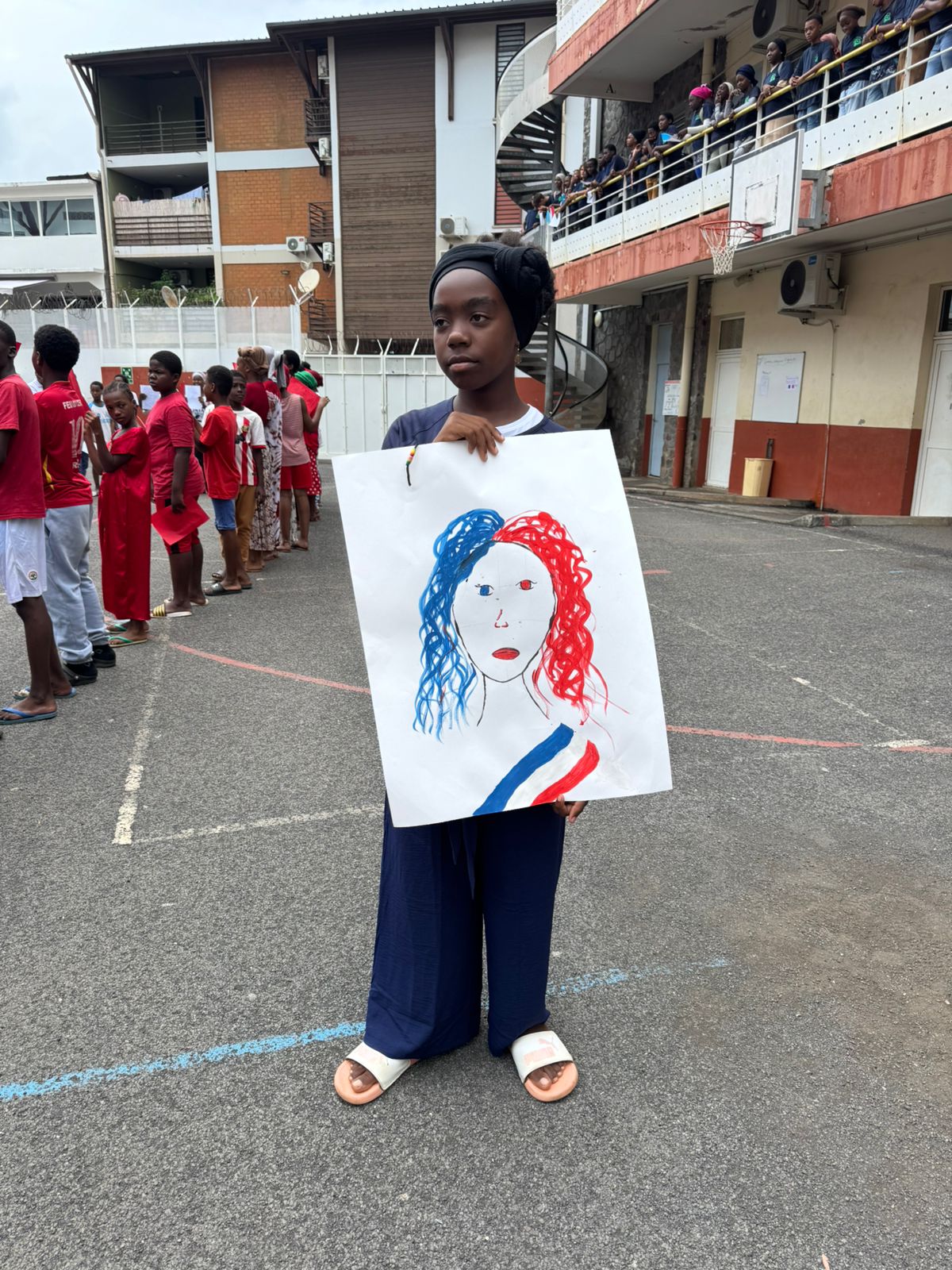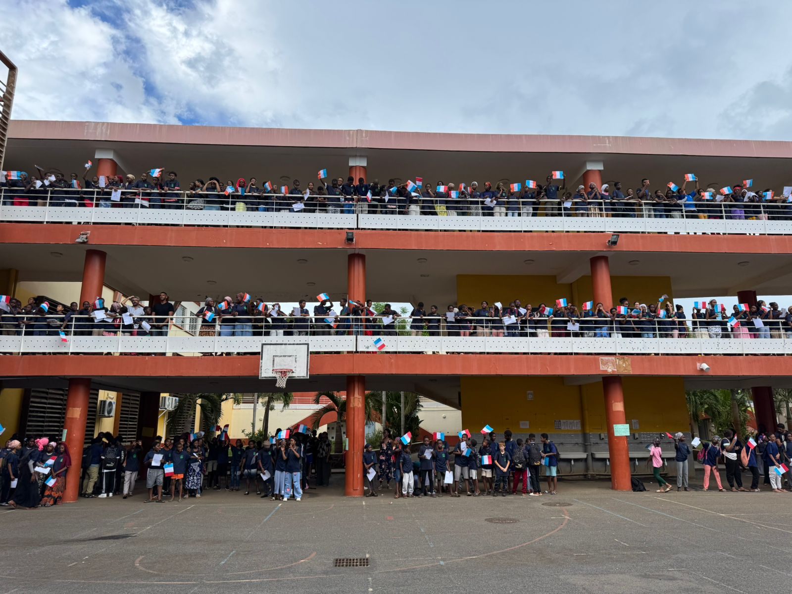 À cette occasion, élèves et personnels se sont réunis pour un moment fort en symboles, marqué par les couleurs bleu, blanc et rouge, portées par chacun pour affirmer l’unité et les valeurs communes qui nous rassemblent.